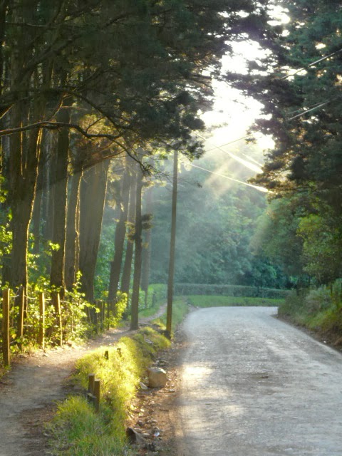 Regressámos a Santa Elena pela mesma estrada, mas esta vez a pé. O último autocarro já tinha partido há bastante tempo e àquela hora, com o fim da tarde a aproximar-se, os automóveis eram raros, mais raros ainda do que as pessoas. O caminho é a descer e o calor já não apertava, por isso fizemos o percurso sem dificuldade. Raios de sol tépidos escoavam-se através das árvores, originando uma luminescência difusa que emprestava ao caminho um ambiente etéreo.