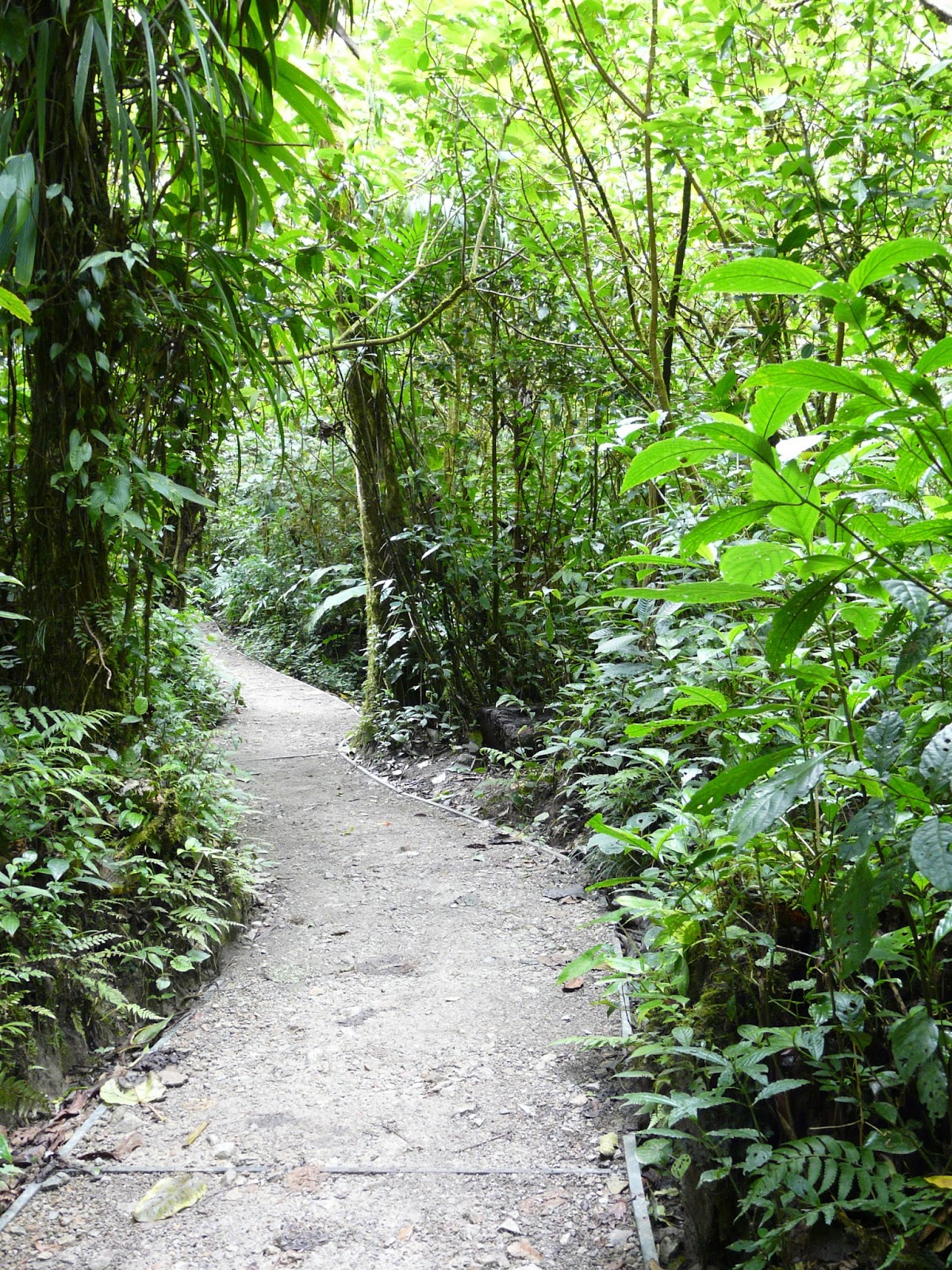 Como tínhamos planeado passar a maior parte do dia na Reserva, iniciámos o passeio pelo trilho Bosque Nuboso, que se estende por 1900 metros ao longo do lado sul da floresta. É um dos caminhos mais bonitos, onde vimos belíssimos exemplares de figueiras estranguladoras, flores desconhecidas e muitos pássaros de porte pequeno. Tem alguns troços inclinados e quase no final, saindo do trilho principal durante trezentos metros, acede-se a um miradouro a que chamam La Ventana – a cerca de 1600 metros de altura, o suficiente para se ver toda a paisagem até além do golfo.