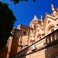 A Basílica do Santuário da Virgem de Ta’ Pinu é outro exemplo sonante desta ligação religiosa. Isolado numa zona árida onde não se passa nada (a aldeia mais próxima fica a meio quilómetro de distância), a magnificência deste santuário destoa e ao mesmo tempo surpreende como uma gema brilhante engastada em metal pobre. É um edifício colossal, que me impressionou tanto pela imponência como pela beleza. Foi construído em inícios do século XX no estilo neo-românico, em pedra rosada e ocre, com um recorte complexo em vários volumes e níveis, e é encimado por uma cúpula. O campanário está separado, ao estilo italiano, destacando-se com os seus 60 metros de altura. O interior é uma mistura bem conseguida de elementos arquitectónicos clássicos com arabescos e pormenores bizantinos – espelho das várias influências que a cultura maltesa agrega. A penumbra e a serenidade da atmosfera convidam à reflexão. Ainda assim, há pouca gente a visitar a basílica, e todos são turistas como eu. Um painel à entrada pede decoro, respeito e silêncio. E silenciosa é a devoção dos fiéis, materializada nos inúmeros ex-votos que enchem as paredes da sacristia, agradecimentos mudos mas eloquentes pela concretização dos desejos de quem deposita grande fé na padroeira do local.