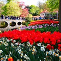 Situado em plena região dos campos de tulipas, o parque Keukenhof nasceu em meados do século XX com um propósito claro: mostrar ao mundo a excelência da floricultura holandesa. O nome remete para o século XV, quando as terras eram usadas para a horta da cozinha (“keuken”) do castelo da condessa Jacoba van Beieren. O passado agrícola cedeu entretanto lugar a um projecto que viria a assumir proporções monumentais: um jardim concebido como vitrina artística da produção floral, e também como cenário de sonho para os mais de um milhão de visitantes que o procuram todos os anos, durante as escassas oito semanas de Primavera em que o Keukenhof permanece aberto.