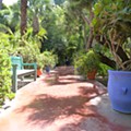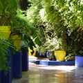 Passear pelo jardim é atravessar um percurso de contrastes calculados. Sob os nossos pés, os caminhos de cor ocre que remetem para a tradição marroquina; à volta, o choque vibrante entre o azul, o amarelo intenso e o branco que marcam portas, vasos e elementos decorativos. Entre estes planos de cor erguem-se mais de trezentas espécies de plantas, vindas de cinco continentes: palmeiras imponentes, bambus ondulantes, buganvílias, lótus, nenúfares. Uma diversidade vegetal não caótica, antes coreografada para criar um equilíbrio subtil entre sombra e luz, densidade e abertura. O jardim desdobra-se numa sucessão de quadros vivos: a vegetação enquadra a cor dos caminhos e das paredes, o reflexo da água intensifica o contraste dos elementos arquitectónicos.