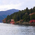 Em Hakone, ma revela-se na relação entre movimento e pausa, entre paisagem e deslocação. No Lago Ashi, protegido pelas montanhas que o cercam, a água cria um espaço de imobilidade, de acolhimento silencioso, mas também de separação – entre o que está oculto abaixo da superfície e o que se descobre acima dela. O Torii da Paz, ancorado no lago, marca a transição simbólica entre o profano e o sagrado. Ao Kuzuryū-jinja (Santuário do Dragão com Nove Cabeças), recolhido na floresta, só chegamos depois de ascender muitos degraus. Em Hakone, ma é o tempo e espaço entre um lugar e outro, a terra de ninguém que permite a existência plena de algo depois dela. E que, ao mesmo tempo, transforma a deslocação em experiência.