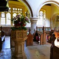 O edifício actual data principalmente do século XV, mas terá sido possivelmente construída no local de uma igreja saxónica. O interior é espartano e tem muita madeira escura, como é habitual nestas igrejas tão antigas. Também aqui, espelhando o lado prático dos ingleses, notei a presença de coxins semelhantes aos que tinha visto em Stow-on-the Wold, diligentemente pendurados nas costas dos bancos corridos, destinados a almofadar a genuflexão dos participantes nas missas.