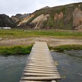 Continuámos pelo trilho que atravessa o campo de lava de Laugahraun, formado após uma erupção que ocorreu em 1477, e depois começámos a descer. Nesta parte do percurso as rochas têm um aspecto mais suave, com a pedra meio desgastada pela acção dos elementos. Aos pés de um manto de neve ainda não derretido, passámos por um pequeno lago de água meio transparente, meio azul-turquesa pelo efeito óptico da neve submergida. Chegámos por fim ao vale, uma enorme área completamente plana, rodeada pelas montanhas multicoloridas – um gigantesco anfiteatro natural criado sabe-se lá por que deuses bem-humorados. As pernas agradeceram o terreno plano, e o fôlego também.