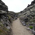 O trilho mais simples para quem só tem algumas horas disponíveis é o percurso circular Laugahraun-Graenagil. São cerca de 5,5 km com um desnível de 200 metros, que se percorrem com calma em duas horas e meia. O início fica entre o Centro de Informação Turística e a piscina natural de água quente: um simples carreiro de terra batida por muitos pares de botas, subindo por entre entre rochas negras com borrões de musgo verde, que se projectam como espinhos na crista da elevação.